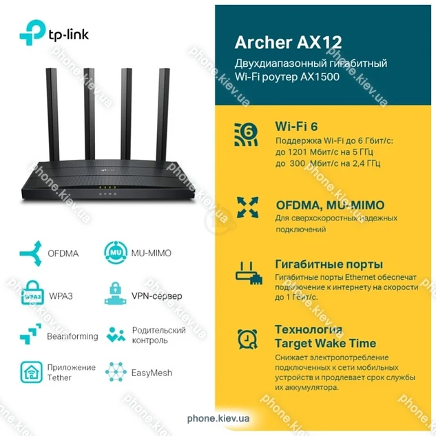 TP-LINK Archer AX12, Киев, УкраинаБренд: TP-LINK Зимняя скидка 2025 г.: 15%, экономия: 170 ₴