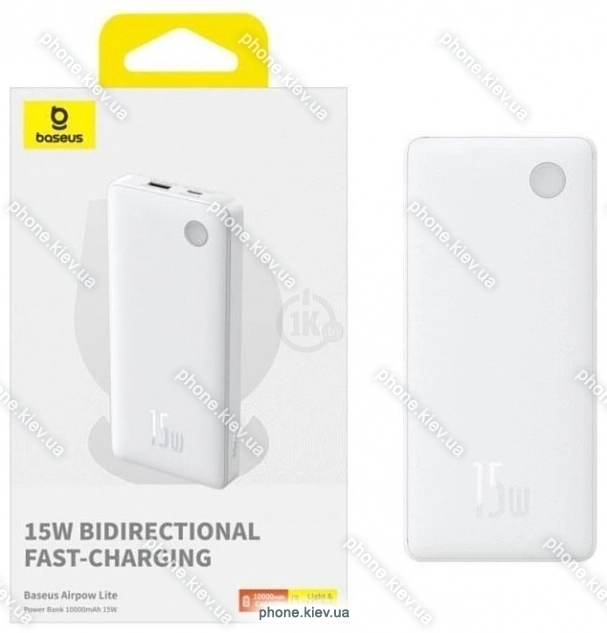 Baseus Airpow Lite Power Bank 15W 10000mAh, Киев, Украина.Бренд: Baseus Зимняя скидка 2025 г.: 10%, экономия: 39 ₴