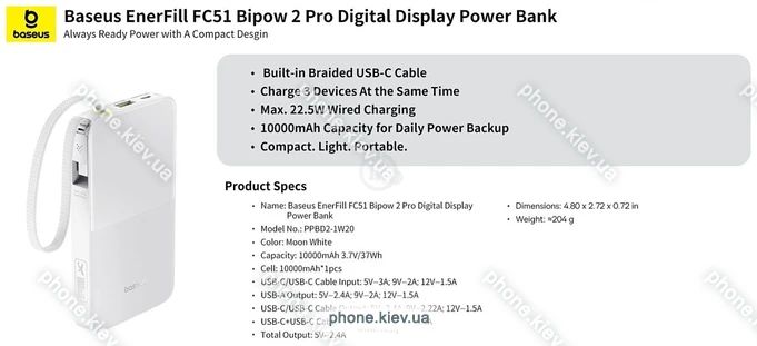 Baseus EnerFill FC51 Bipow2 Pro Power Bank 10000mAh — купить недорого в Киеве с гарантией качества и бесплатной доставкой по Украине |