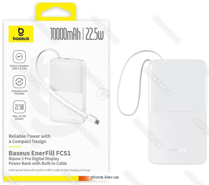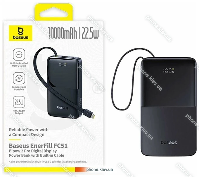 Baseus EnerFill FC51 Bipow2 Pro Power Bank 10000mAh в КиевеБренд: Baseus Зимняя скидка 2025 г.: 20%, экономия: 138 ₴