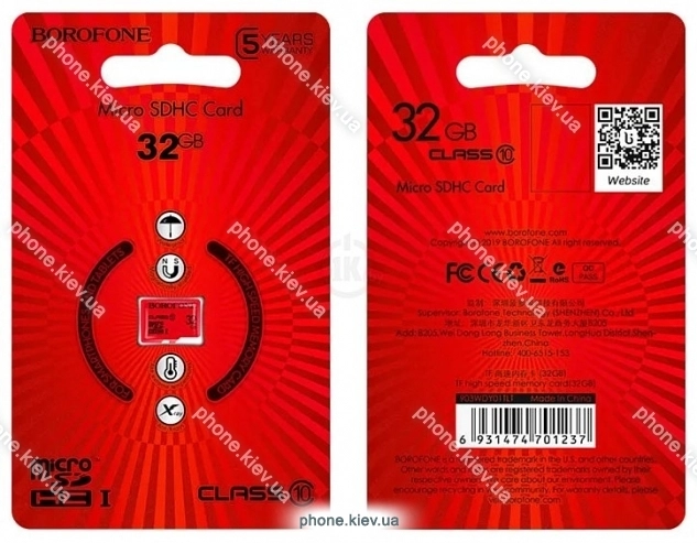 Карта памяти Borofone microSDHC 32GB (без адаптера), Киев, Украина.Бренд: Borofone Зимняя скидка 2025 г.: 10%, экономия: 19 ₴