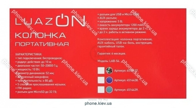 Портативная акустика Luazon LAB-54, Киев, Украина.Бренд: Luazon | |