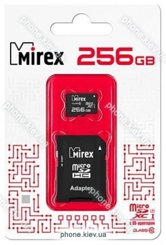 Карта памяти Mirex microSDXC Class 10 UHS-I 256GB + SD adapter, Киев, Украина.Бренд: Mirex Зимняя скидка 2025 г.: 10%, экономия: 107 ₴