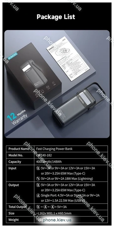 Romoss PMT40 Pro 40000mAh — купить недорого в Киеве с гарантией качества и бесплатной доставкой по Украине |