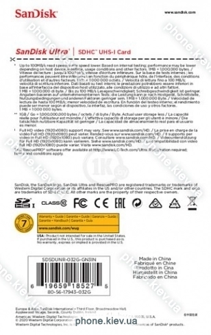 Карта памяти SanDisk Ultra SDHC SDSDUNR-032G-GN3IN 32GB, Киев, Украина.Бренд: SanDisk Зимняя скидка 2025 г.: 10%, экономия: 32 ₴
